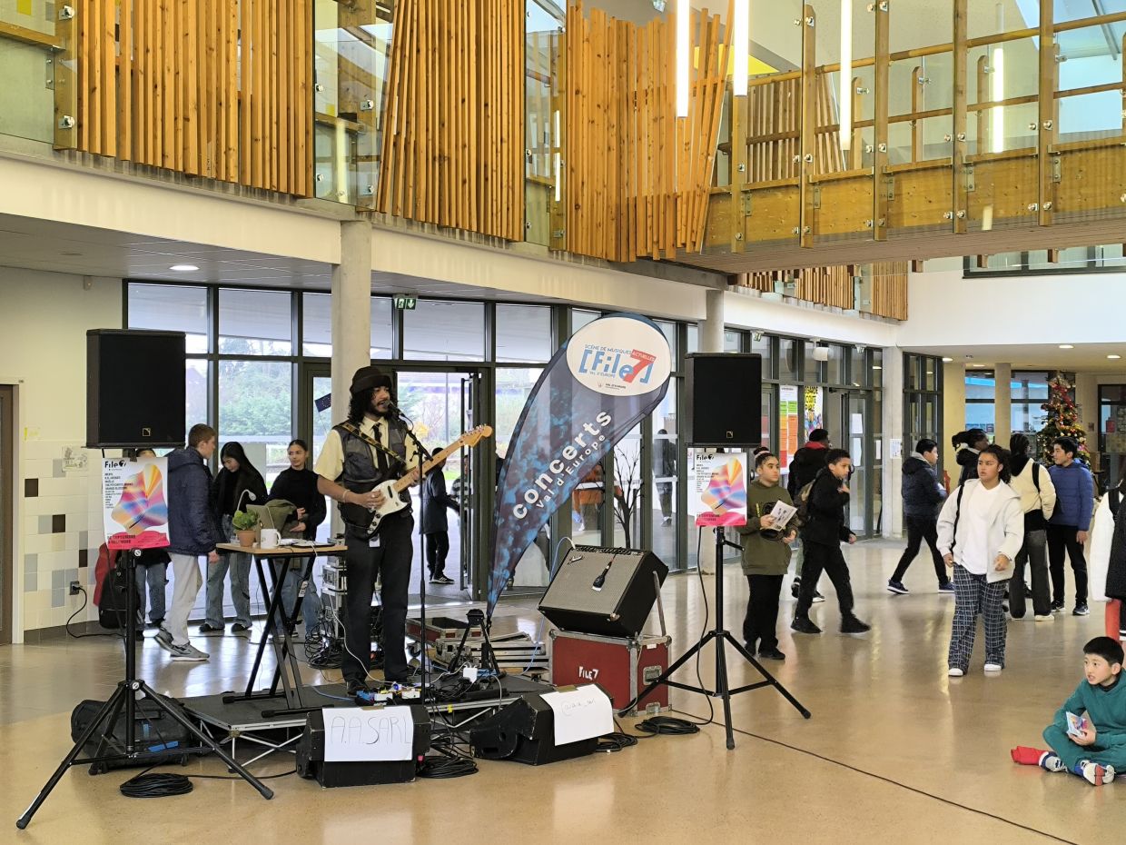 A l’hiver 2024-2025, A.A SARL a joué au collège de la Maillière à Lognes, au lycée Martin Luther King de Bussy St Georges ainsi qu’au Lycée Auguste Perdonnet de Thorigny sur le temps du déjeuner des élèves. L'occasion de passer une pause en musique en découvrant un artiste émergent accompagné par File7 !Avec la Tournée des Cantines, nous affirmons une nouvelle fois que la musique peut se vivre partout, tout le temps, y compris dans les écoles à l'heure du déjeuner.
